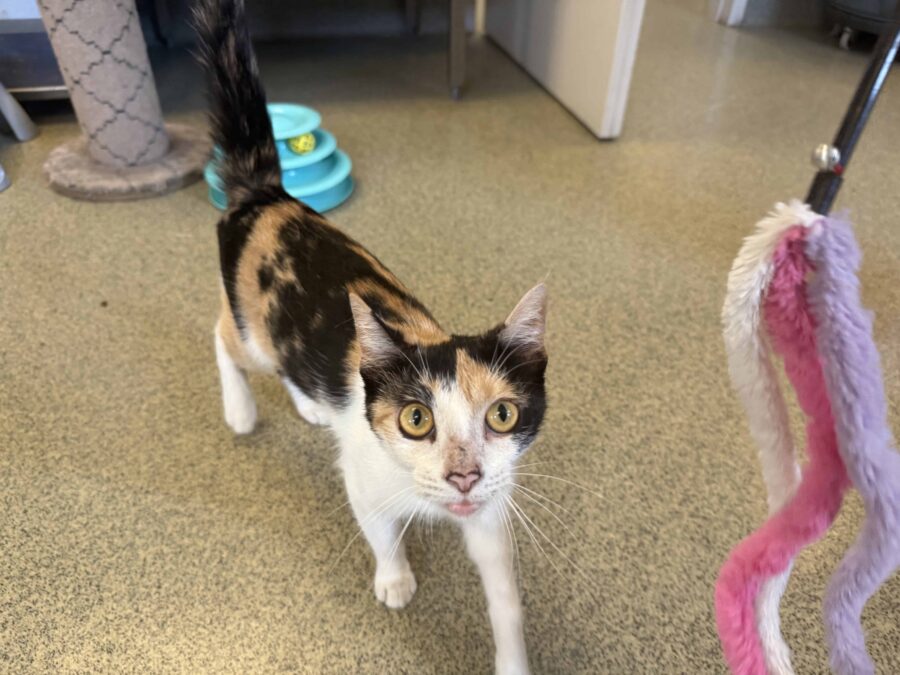 Estimated to be around 10 to 11 months old, Myrtle came to ESACC after being caught in a live trap. She was spayed shortly after intake and has since adjusted well to shelter life. Myrtle is a domestic short-haired calico cat with soft tri-color markings and a gentle personality. Staff describe her as loving, attention-seeking, and well-mannered. She’s fully litter box trained, up to date on vaccinations, and easy to get along with.