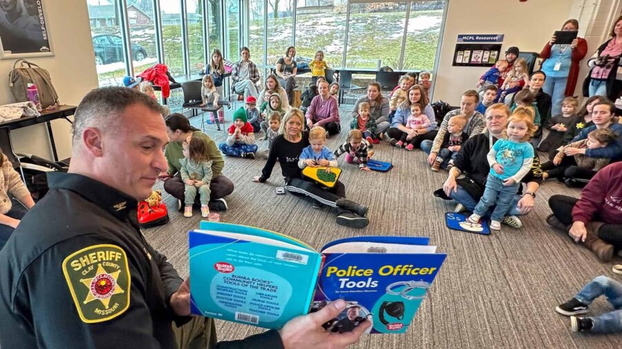 Clay County Sheriff Will Akin made a visit to MCPL in 2024, with Police Community Heroes Storytime to continue this year (photo The Excelsior Citizen)