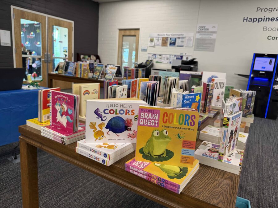 Prize books with appropriate selections for ages 0-19 sit in a designated area waiting for readers to choose them! (Photo Stephanie Vincent)